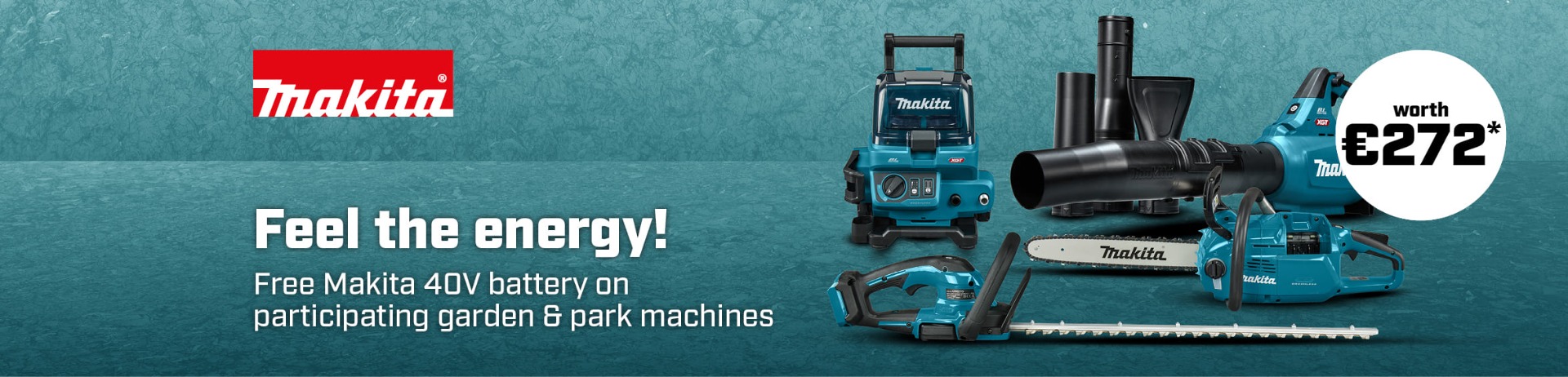 *Could you use a new Makita garden and/or park machine? Now is the perfect time to take advantage! Get a free 40V Max 4.0Ah battery worth €272.25 this month only with the purchase of participating Makita garden and/or park machines. See the full list of participating products here.